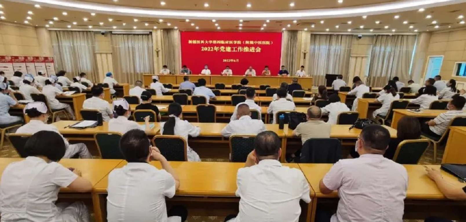 医院在家院领导、各党总支书记、党支部书记、委员共计100余人参加会议。