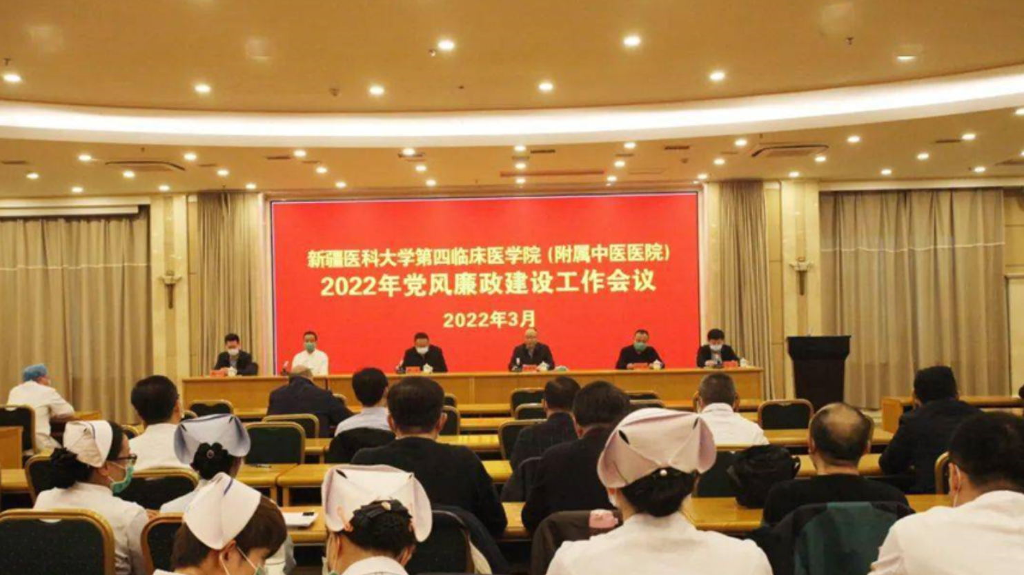 2022年3月16日下午,新疆医科大学第四临床医学院(附属中医医院)召开2022年党风廉政建设工作会议。医院党委书记、副院长韩荣讲话,党委副书记、院长陈静波主持会议。