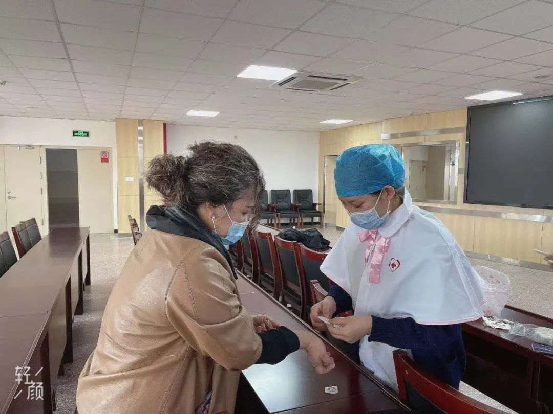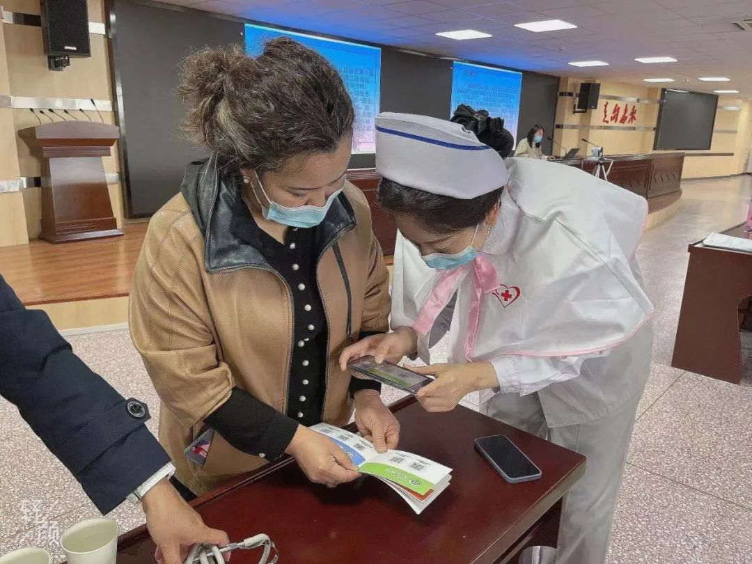 在活动现场,王秦豫护士长为民生学校的教职工及社区工作人员进行了心理健康促进知识讲座,志愿者吴珊珊、马婷婷护士为市民学校的社区工作人员测量血压,对存在睡眠、情绪、记忆力等问题的工作人员及教职工、学员给予免费精神科量表检查,对有临床症状的人员进行耳穴压豆、睡眠穴位贴敷等治疗,还提供了线上视频宣教资料。
