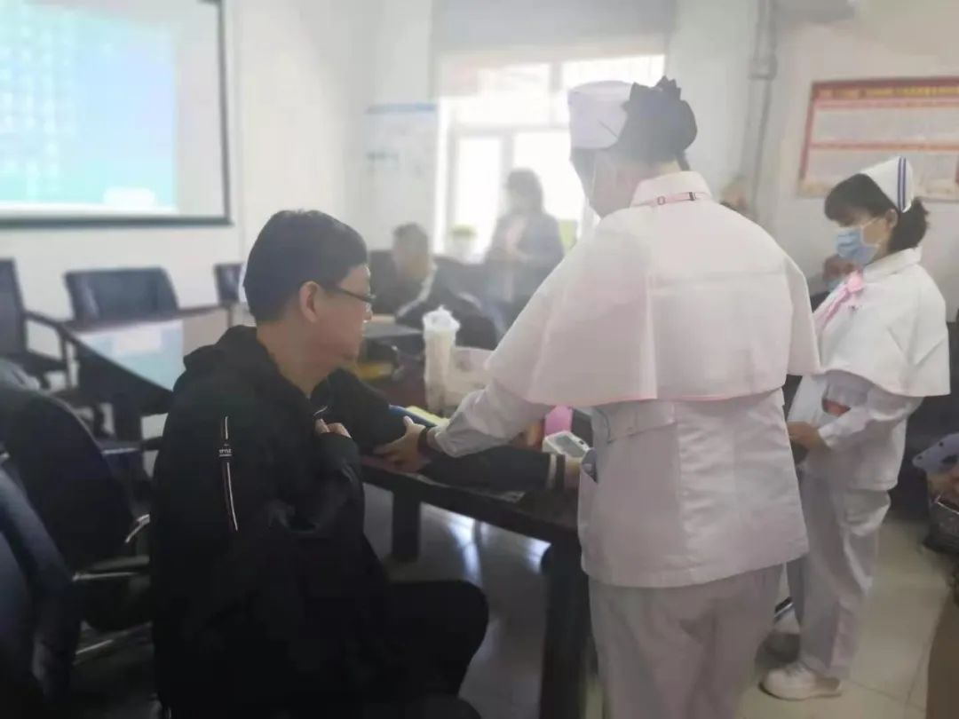 高血压科甘庆雷医生为后勤职工讲解了“高血压怎样调理”,并为大家把脉问诊,主管护理师张婷、护士长张玉洁为大家测量血压、血糖,发放健康手册。