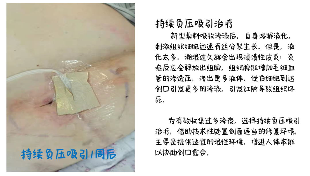 随着伤口不断感染破损,患者及家属非常担忧,医院相关科室同伤口管理小组组长黄媛媛副主任护理师和技术支持邵利萍副主任护理师为患者会诊后,对创面进行详细评估后制定治疗方案:湿性愈合+负压吸引;同时由神志科陈俊逾主任根据病人体质,辩证制定中药调护方案。