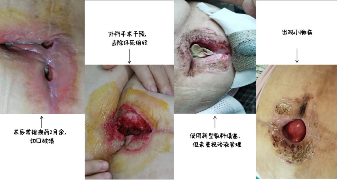 患者张丽(化名),年近七旬,6个月前因腹部肿瘤行外科手术治疗,采取常规换药5月有余,由于缝合线排异、对抗感染、伤口渗液管理等多方面原因,出现术区伤口出现延迟愈合及潮湿相关皮肤损伤,伤口属于第四级(即由于创伤深致皮下组织、筋膜、肌肉或骨骼的伤口)。