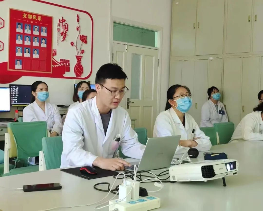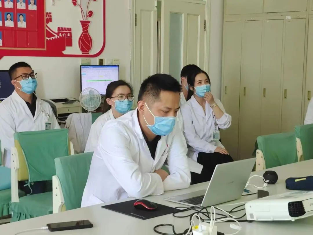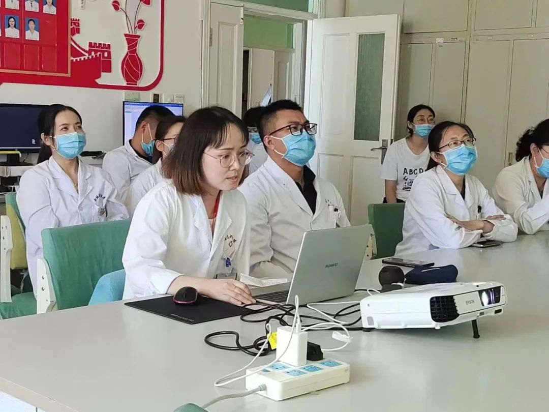 会议连线新疆医科大学附属中医医院(自治区中医医院)皮肤科全体医务人员和研究生、喀什地区第一人民医院皮肤科、巴州人民医院皮肤科、克拉玛依市人民医院皮肤科、焉耆县人民医院皮肤科等科室的近200名医师参加。我院皮肤科副主任张成会主持会议。