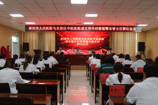 6月27日,新疆医科大学附属中医医院(自治区中医医院)普外一科主任段绍斌应和田市人民医院邀请,赴该院建立“段绍斌专家工作室”,并受聘该院普外科名誉主任。和田市卫健委党组书记、副主任汪崇国,和田市人民医院党支部书记俞筠梅、院长马鑫文及各临床科室主任业务骨干参加会议。