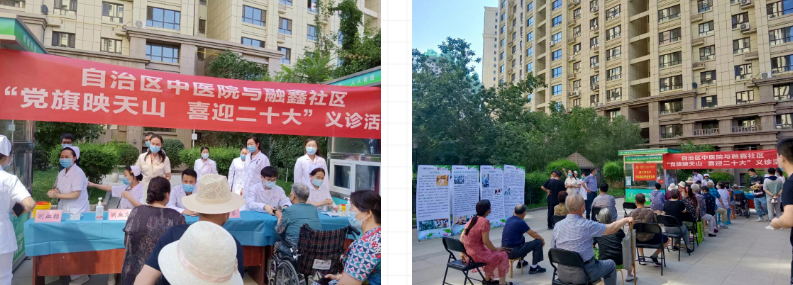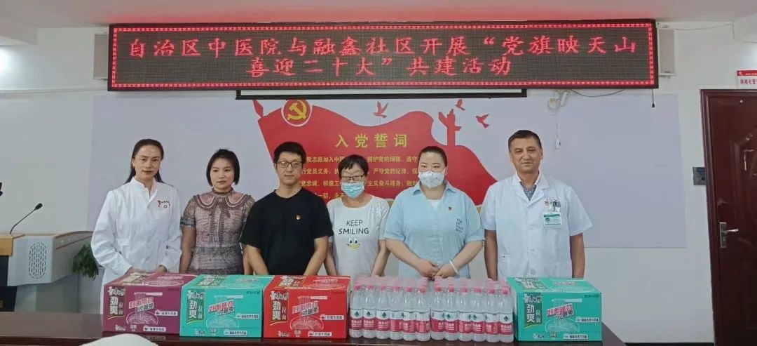 在党的二十大即将召开之际,7 月 22 日,新疆医科大学附属中医医院检验输血营养党支部、重症医学党支部与水磨沟区六道湾街道管委会融鑫社区联合党委开展“党旗映天山 喜迎二十大”共建活动。活动包括专家义诊送健康、慰问困难群众、支部经验交流会、参观智能化微社区。