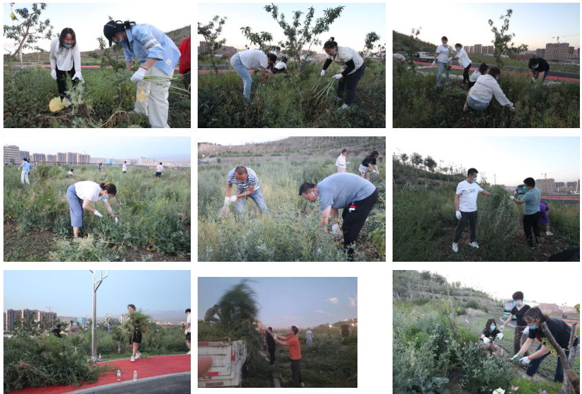 参观过后,全体学员来到校区的绿化区域,与在这里工作了四个月的老党员马旭东科长汇合,在他的带领下开展清理杂草、植树绿化劳动。虽然已是夕阳西下的傍晚时分,但大家的劳动热情却不减分毫。入党积极分子们分组包片、明确分工,对清洁区域的杂草进行了集中清理。大家以劳动为荣,乐在其中。各小组长以身作则带头干,所有同志都抢着干,年轻的入党积极分子主动担当重活累活,许多学员身上的衣服都被汗水湿透。本着不怕苦、不怕累的精神,大家团结一心,用最快的速度将区域的杂草清理完毕,为雪莲山校区营造了更加干净、整洁的校园环境。