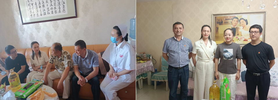 党支部书记徐菲莉、居来提•阿布都克热木在融鑫社区书记的带领下,分别来到华凌公寓、叶办小区和兴兴小区,慰问困难群众和老党员代表。“身体状况如何?生活上有哪些困难?”两位党支部书记悉心了解老同志的生活困难和身体近况,向老党员宣传健康保健知识,并送去慰问品。本次活动共慰问5名党员群众代表。