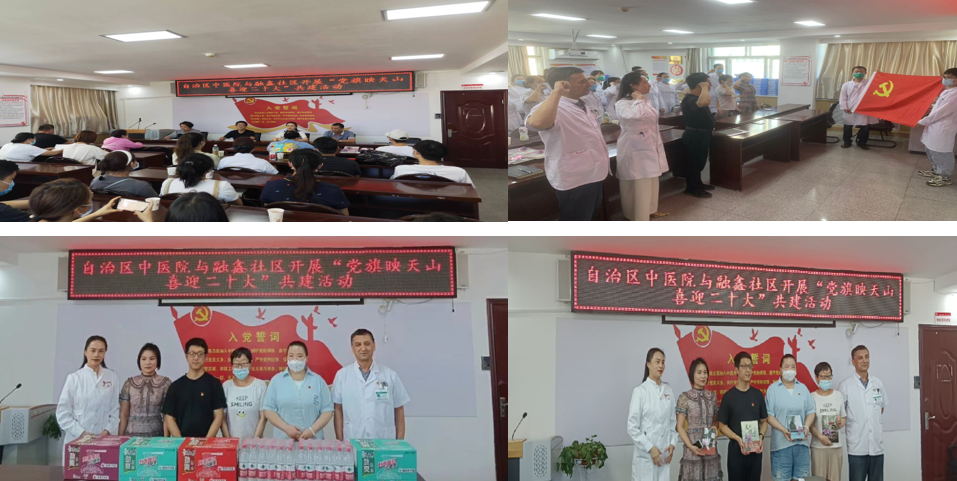 在党的二十大即将召开之际,7 月 22 日,新疆医科大学附属中医医院检验输血营养党支部、重症医学党支部与水磨沟区六道湾街道管委会融鑫社区联合党委开展“党旗映天山 喜迎二十大”共建活动。活动包括专家义诊送健康、慰问困难群众、支部经验交流会、参观智能化微社区。