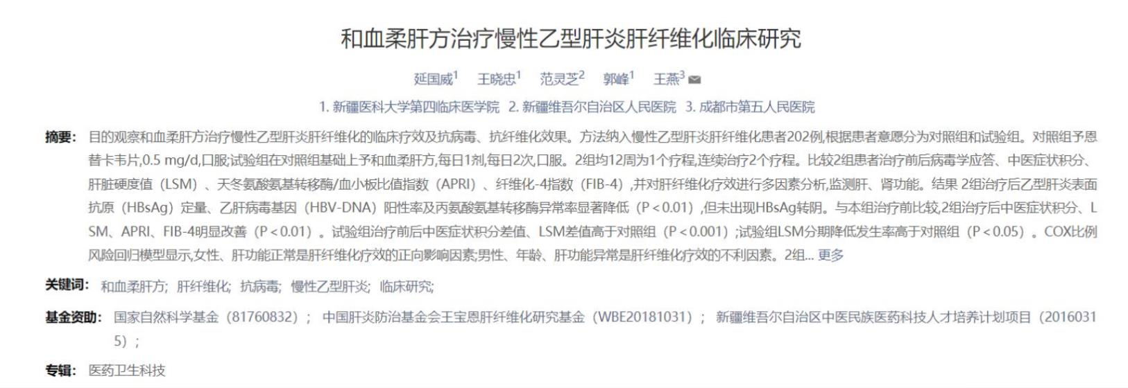 和血柔肝方根据乐德行教授中医肝病临证经验,因地制宜所拟。经动物及临床实践证明和血柔肝方可改善慢性乙型肝炎肝纤维化程度,改善病毒学应答,安全性良好。