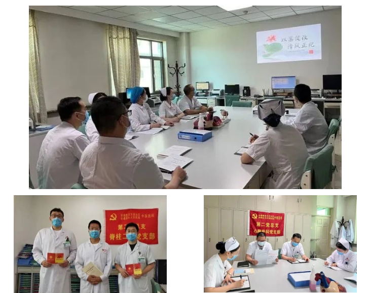 为进一步推进党风廉政建设,净化医疗卫生环境,教育引导广大党员干部知敬畏、存戒惧、守底线,新疆医科大学附属中医医院各党支部于近期陆续开展“以案促改、清风正纪”主题党日。