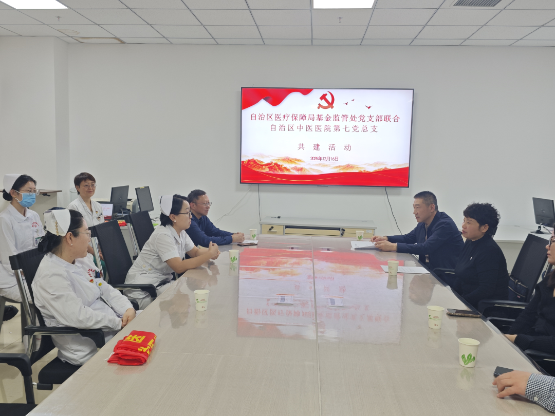 为深入学习贯彻党的二十届四中全会精神,以高质量党建引领中医药事业与医疗保障协同发展,2025年12月16日下午,新疆维吾尔自治区医保局基金监管处党支部联合新疆医科大学第四附属医院第七党总支开展 “支部共建 凝心聚力”主题活动。双方以党建为纽带,打破行业壁垒,将医保基金监管业务与中医药服务发展深度融合,构建起“中医服务有力度、医保监管有温度”的共建新格局。