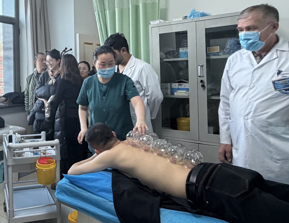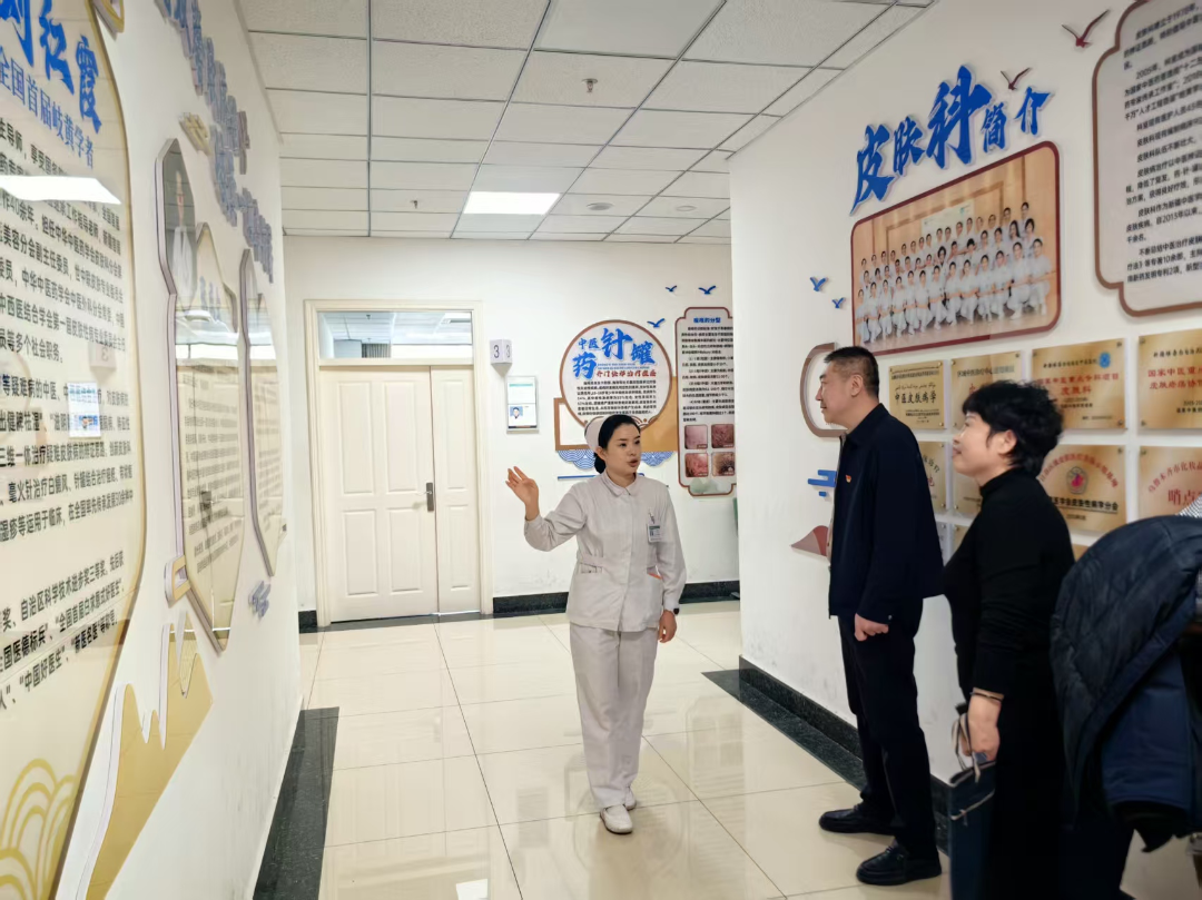 研学环节,医保局基金监管处党支部党员干部先后走进医院推拿科、皮肤科等中医特色科室。在推拿科诊疗区,党员干部现场观摩中医推拿、正骨复位等传统技法的临床应用,详细了解科室在颈肩腰腿痛、骨关节疾病等慢性病治疗中的特色优势。在皮肤科,医护人员围绕中医中药、针灸、拔罐等特色疗法在湿疹、痤疮、银屑病等皮肤病治疗中的独特疗效,进行了细致讲解,双方就中医特色诊疗项目的医保支付标准、基金监管重点等问题展开了即时交流。参观过程中,党员们不时驻足询问,对中医院传承创新中医特色技术、提升医疗服务质效的实践举措给予了高度评价。在中药文创区,特色中药茶饮让参观者直观感受到中医药与日常生活的深度融合,深切领略到中医药文化的独特魅力。