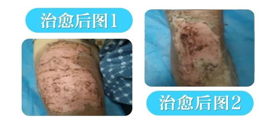 针对此患者情况,我们在门诊换药室给予清创换药,使用新型抗菌辅料贴于烫伤部位,每72小时更换,能够有效加速促进创面愈合,新型辅料接触到创面的渗出物后,形成湿性环境,为创面愈合创造最佳条件;