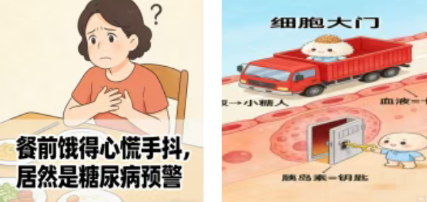 我们把吃进去的米饭、馒头想象成“糖”,血液就是运输糖的“卡车”。这些糖要进入身体的细胞里,才能变成能量。但细胞有个看门的“门卫”,糖进不去,需要一把钥匙。