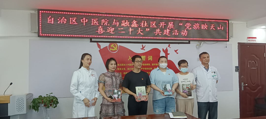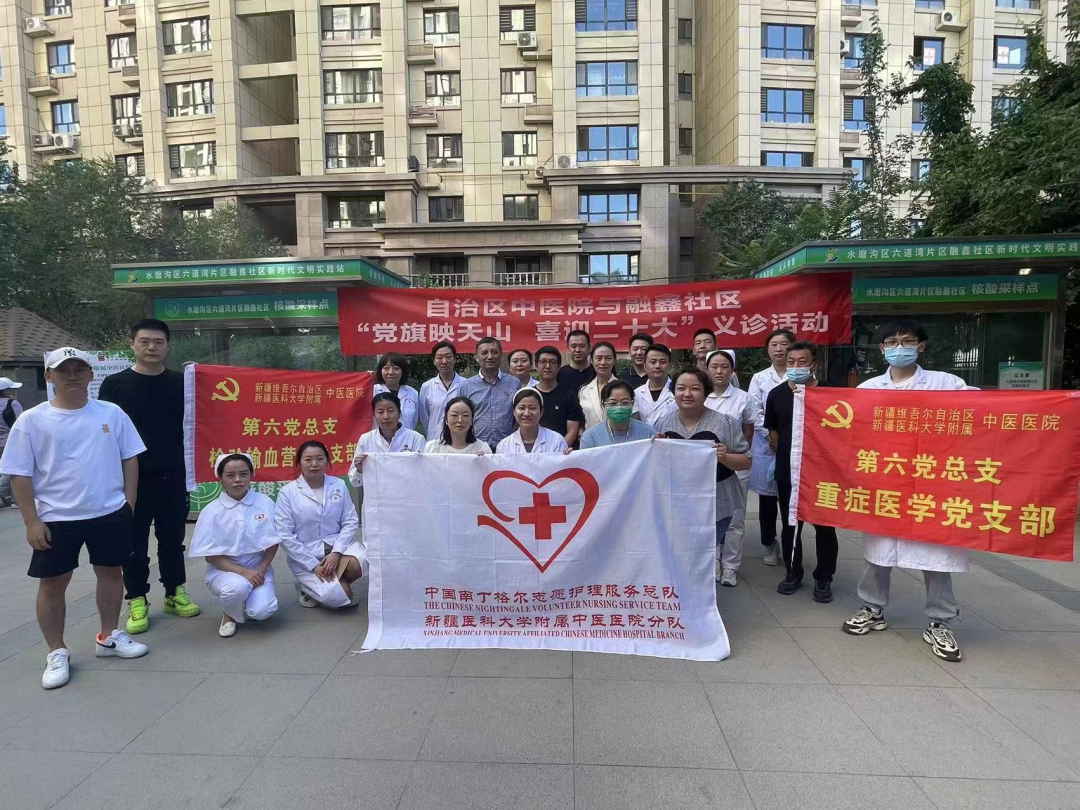 在党的二十大即将召开之际,7 月 22 日,新疆医科大学附属中医医院检验输血营养党支部、重症医学党支部与水磨沟区六道湾街道管委会融鑫社区联合党委开展“党旗映天山 喜迎二十大”共建活动。活动包括专家义诊送健康、慰问困难群众、支部经验交流会、参观智能化微社区。