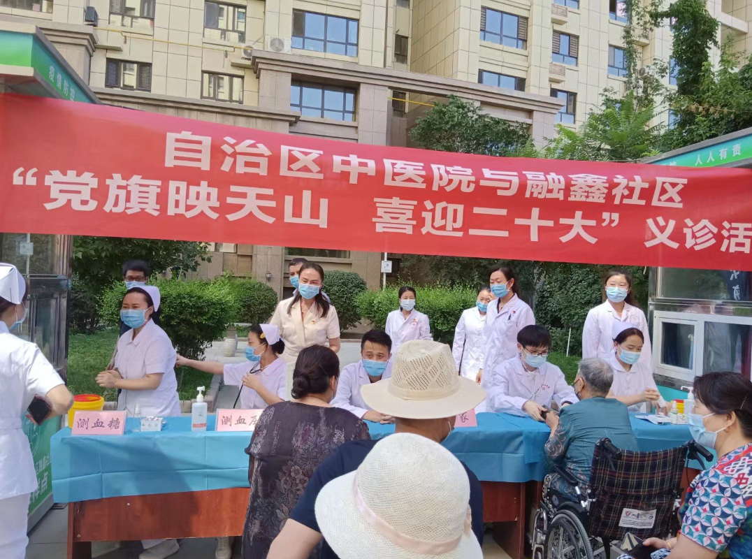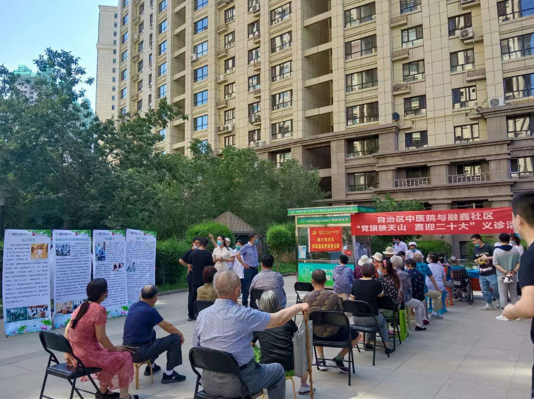 在党的二十大即将召开之际,7 月 22 日,新疆医科大学附属中医医院检验输血营养党支部、重症医学党支部与水磨沟区六道湾街道管委会融鑫社区联合党委开展“党旗映天山 喜迎二十大”共建活动。活动包括专家义诊送健康、慰问困难群众、支部经验交流会、参观智能化微社区。