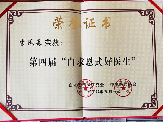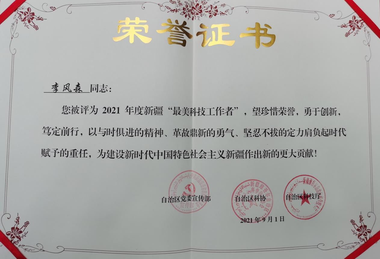3.发现新冠不单有“湿”,还有“燥热伤津而肺病”的特点。临床发现在新疆、内蒙等西北地区,新冠肺炎 “湿”的临床特点并不明显,轻型、普通型患者反而常出现“燥邪伤肺”临床表现,因此新冠治疗不但要重视“湿”,更要重视“燥”,因此提出西北新冠肺炎的特殊证型“燥邪伤肺”证,获得专家认可,并受国家中医药管理局邀请,修订《新型冠状病毒肺炎诊疗方案(试行第八版 修订版)》纳入此证。基于此结合患者临床证候及演变规律,提出“益气养阴,清热化湿”法并拟定了新冠预防、治疗和康复的三个处方,申报获批为院内制剂,并申报国家发明专利。其中新疆新冠“1号方(参麦宁肺合剂)” 生产并发放38万余剂,在新疆新冠疫情防控中起到了显著的作用。通过真实世界研究发现,参麦宁肺合剂抑制炎症介质释放,避免炎症风暴的产生,从而达到治疗新冠肺炎的目的。目前该药已经进行新药的临床前研究。李风森主任医师还主持制定新疆《新型冠状病毒感染的肺炎重症中医药治疗指导方案》及《新型冠状病毒感染无症状感染者诊疗方案》,主持2020年新疆公共卫生关键技术研发与防疫体系建设项目。疫情发生以来,李风森主任医师先后转战于新疆、内蒙古等省市指导疫情防控工作,并于2020年3月以副领队身份前往巴基斯坦开展抗疫指导工作,分享中国抗疫经验,为巴基斯坦不断完善疫情防控体系建设、提升筛查检测能力等提供有效帮助,其学术思想和专业技能得到了国家卫健委和外交部的好评。先后获得全国科技系统抗击新冠疫情先进个人、援外先进个人、新疆维吾尔自治区优秀共产党员,先进工作者,第四届全国“白求恩式好医生”,中华中医药学会通报表扬抗疫个人、新疆“最美科技工作者”等荣誉称号。