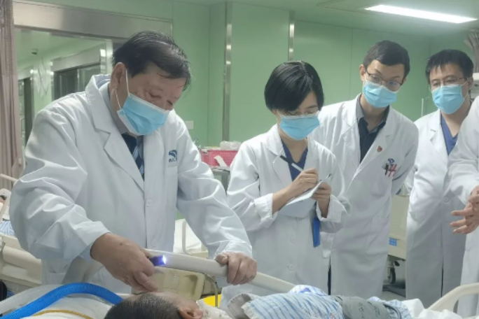 在听取病例汇报后,沈老对小周前期艰苦卓绝的治疗给予充分肯定,经过床旁四诊辩证,判断小周为神昏、黄疸,属于阴闭证、阴黄证,建议给予扶正宣通开窍、健脾燥湿理气治疗,并开具了处方。带着能否清醒的疑问和期盼,经过中药鼻饲治疗1周后,12月14日早晨查房,床位医师发现在呼唤小周时,小周出现了明显肢体互动交流,并能循声而动,遵嘱眨眼,眼神中透出光芒,小周醒过来了!重症医学科全体成员激动不已,昏迷近1个月的小周重新燃起了新的生机!目前小周正在进行康复治疗,期待他早日恢复功能。