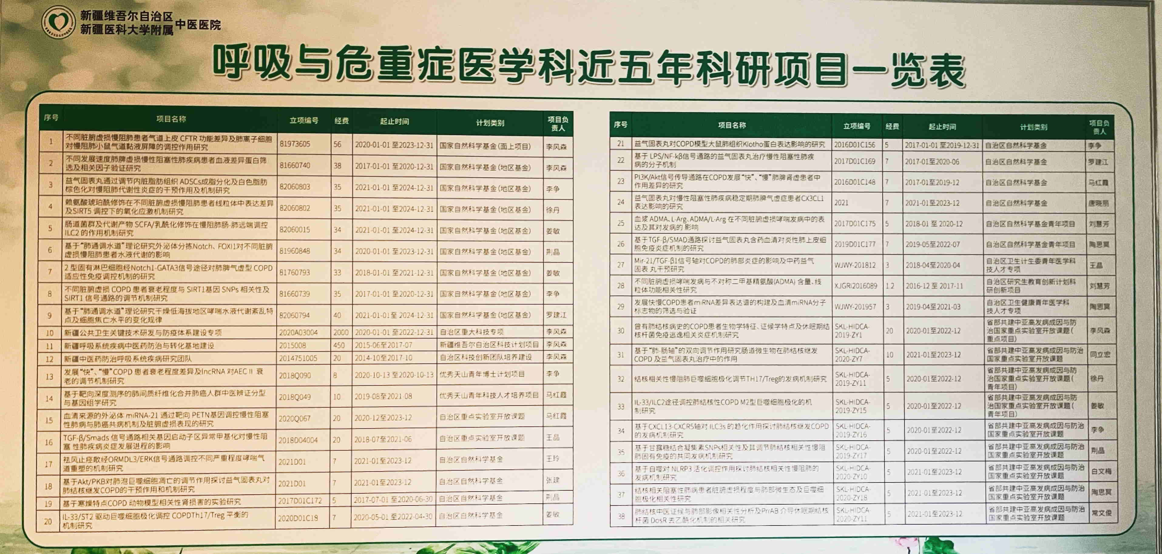 李风森教授累计主持国家自然科学基金项目5项;主持2020年自治区重大科技专项新疆公共卫生关键技术研发与防疫体系建设专项、自治区科技计划项目及其它省部级基金项目十余项,获得科研资助3000余万元。发表论文260余篇,其中SCI期刊论文30余篇,出版著作2部,副主编编写国家 “十三五”规划教材等2部,获得自治区科技进步奖一等奖1项,自治区专利奖二等奖1项,新疆医学科技奖一等奖1项。主持制定行业标准3个,主持研发院内制剂8个,同时李风森主任医师立足我区,积极培养青年骨干人。